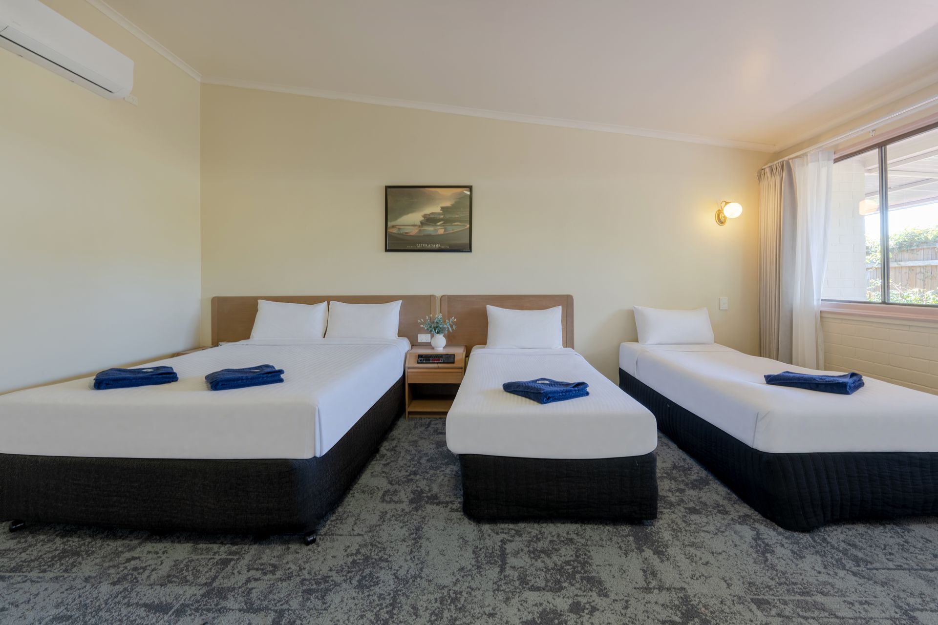 Ideal for larger families, this non-smoking room offers one queen bed and four single beds, a private ensuite bathroom, smart TV, free WiFi, kettle, microwave, fridge, cooktop stove, hairdryer, and iron. Enjoy the comfort of home with the added bonus of a balcony to relax and unwind.